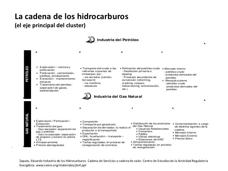 - El cluster de los hidrocarburos como cadena deprocesos productivos Cadena de Valor Hidrocarburos Gas T R Exploración Producción Refinación Mercadeo Liq. Gas I A Gasolina N N D S Otros combustibles U F Procesos de soporte Solventes S O Lubricantes T R R M Asfalto I A Corrientes de Refinería A D S O Coque R Crude A Bienes y servicios Otros S La cadena de suministro Industrialización aguas abajo