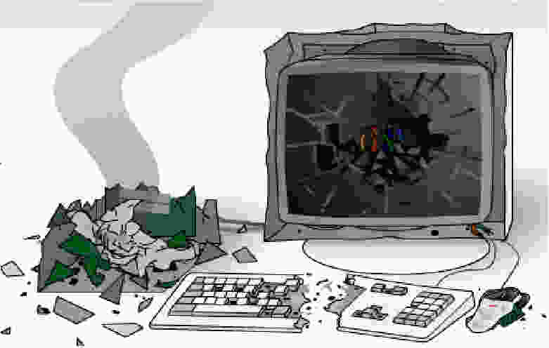 La imagen en el monitor es de un solo color (Azul, Verde, Etc.) Figura 2 o cambia aleatoriamente, Se logra visualizar el escritorio y demás, es probable que el cable de comunicación hacia el monitor este dañado, el monitor, las fichas VGA del monitor dañada o con soldaduras frías, en muy raros casos la placa de video dañada o la ficha VGA con soldaduras frías o dañada. Proceder a verificar uno por uno desde el monitor a la placa hasta dar con el problema.